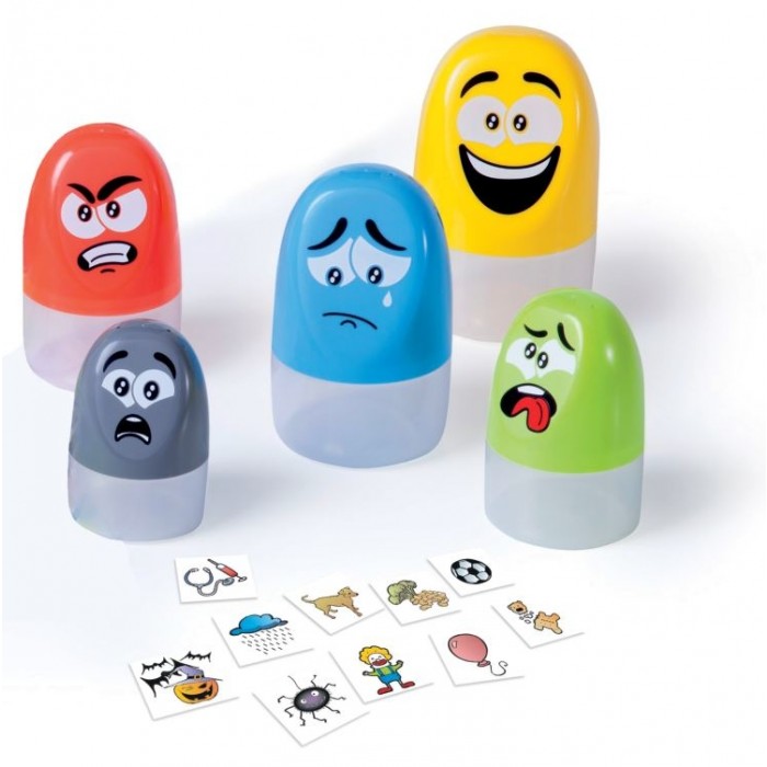 Este juego tiene como objetivo desarrollar la capacidad de los niños y niñas para identificar las diferentes emociones y saber gestionarlas. Consiste en unas cápsulas de colores que representan mediante sus colores y gestos faciales las diversas emociones (alegría, tristeza, enfado,...).